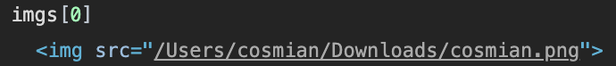 imgs[0] 으로 대괄호가 사라지고 '이미지 태그에 해당하는 값' 만을 가져올 수 있다.