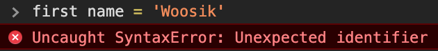 프로그래밍에서는 변수의 이름을 정할 때 띄어쓰기(space)를 사용할 수 없다.