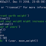 PYTHON 미니 프로그램 만들기 import sys 시스템 모듈 실행 def moon_weight(): moon_weight 함수 생성print('please enter your current earth weight') 지구에서의 몸무게를 입력하라는 메세지 출력weight=float(sys.stdin.readline()) 시스템 모듈의 sys.stdin.readline을 이용해 값을 입력할 수 있도록 하고, float 함수를 이용해 readline에 반환된 문자열을 실수형으로 바꿔준다. 그 후 값을 weight에 저장print('please enter the amount your weight might increase each year')연마다 늘어날 것으로 예상되는 몸무게 값을 입력하라는 메세지 출력..